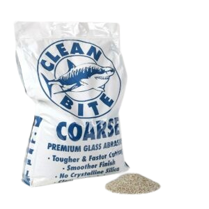 Clean Bite Coarse 20-40 grit is a top-quality abrasive that effectively cleans a wide range of surfaces, such as steel, aluminum, wood, concrete, stone, and fiberglass. This premium glass abrasive guarantees a smoother and brighter finish. Each 40-lb. bag is a must-have in the abrasive blasting industry.